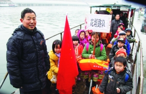 1月20日,保靖县清水小学一至三年级学生结束了期末考试,该校教师像往常一样护送他们乘船回清水江对岸花垣县城的家。该校建校历史可以追溯到1943年,为确保学生平安过渡,教师像这样几十年如一日地护渡,在当地百姓中传为佳话。图为教师一人站船头一人站船尾护渡。