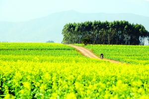 1月22日拍摄的云南罗平成片盛开的油菜花。 正当北国冰天雪地之时,云南省罗平县的80万亩油菜花近日成片绽放,散发出浓浓的春意。 新华社发(毛 虹 摄)