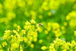 ▲一只蜜蜂在云南罗平盛开的油菜花中飞舞。