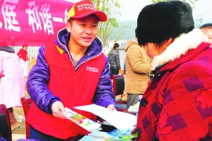 保靖县2013年“三下乡”暨春节慰问活动火热进行,文化、科技、卫生、电力等多支志愿服务队下乡为百姓服务。图为1月24日,在该县阳朝乡梭落坪村,电力志愿服务队成员微笑着给村民发放资料,叮嘱村民安全用电过上欢乐祥和的春节。