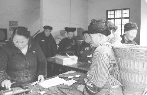1月22日,花垣县董马库乡董马库村代理人龙金元利用电话转账为该村龙拨妹等老人发放养老金。今年以来,该县致力推进农村支付平台建设,300多部转账电话落户该县苗乡村寨,农民群众不用出寨,就能支取养老金,办理取款、转账、查询等业务。 吴红艳 摄