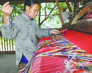 解读:她12岁开始学艺现已授徒百人。她复制的100多幅土家传统织锦已被各地博物馆馆藏。她用50天抢救了传说中的珍品《珍兽图》。今天,吊脚楼上,斜织机前,57岁的刘代娥仍在挑捻之间,把多姿多彩的土家生活织进一片斑斓。