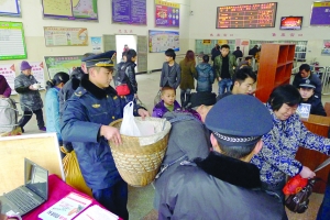 进入春运以来,泸溪县运管所执法人员深入汽车站检查,严禁无牌和超载车辆运客。图为1月28日,执法人员一边执法一边帮助旅客进站,秩序井然。