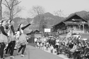 1月26日,保靖县“三下乡”慰问团在该县葫芦镇傍海村开展慰问活动。临近春节,该县根据农村群众对文化、科技、卫生的需求,结合宣传党的十八大精神,组织相关部门60余人开展送文化、科技、卫生为主题的“三下乡”活动,计划节前完成6个乡镇10个村的慰问。图为文艺工作者在给苗乡群众表演精彩节目。