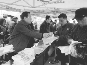 日前,吉首市人口计生局、计生协组织干部职工,深入乾州农贸集市,冒雨为前来赶集的群众进行计生政策宣传和优生优育咨询服务,成为吉首市新年“五下乡”活动一道亮丽风景。图为计生宣传服务队在为集市流动人群发放计生避孕药品和政策法规资料。
