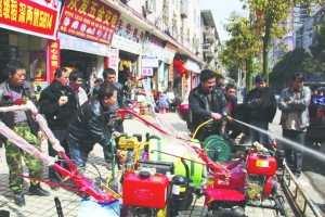 2月22日,花垣县麻栗场镇老寨村农民在该县农机销售点选购机动喷雾器,准备春耕生产。近年来,党和政府不断加大“三农”投入,惠农政策越来越多,耕种机械化程度越来越高。 吴红艳 摄
