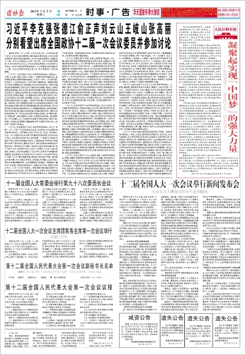 分别看望出席全国政协十二届一次会议委员并参加讨论
