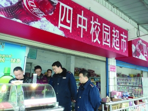 新学期开学后,吉首市工商局乾州分局对州民中等7所中小学校校内的小吃店、小商店及食堂进行了全面整治,严查不合格食品和无证照经营。图为3月7日,该分局执法人员在吉首四中检查小卖部的经营资格。