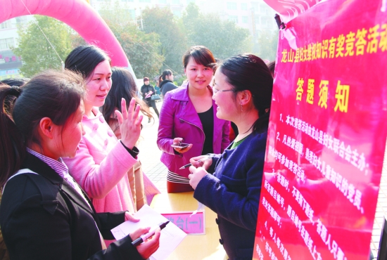 3月6日,龙山县在县城举办妇女儿童维权法律法规知识有奖竞答活动,迎接“三八”节。 刘 怡 摄