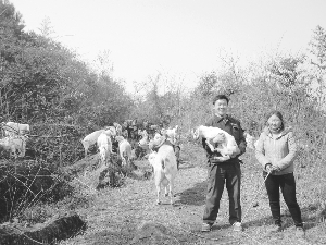 3月3日中午,龙山县里耶镇比耳村彭志刚、向敏夫妻俩在刹风坡放羊。2009年以来,彭志刚与向敏结束外出打工,扎根家乡创业,投资近20万元,在刹风坡上办起了“梦羊园山羊生态养殖农场”。目前,他俩养有山羊380头。