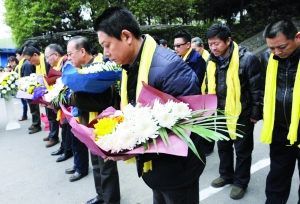 当日,2013年南京市公墓生态葬公祭活动在南京雨花功德园公墓生态葬区举行,生态葬者家属带头不烧纸钱,共同倡导生态、环保、文明殡葬理念,以诵读祭文、敬献鲜花和黄纱的形式,祭奠5000多名生态葬逝者。为推广和鼓励生态葬式,功德园公墓2012年起已对树葬的落葬费、可降解骨灰盒费用实行了全免费。 新华社记者 孙 参 摄