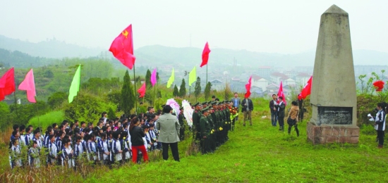 4月2日,泸溪县开展“百支菊花献英雄”清明祭扫活动。该县党员、团员、学生、战士、群众数百人来到浦市镇革命烈士纪念碑,为革命先辈敬献鲜花。 向民贵 张克宁 摄
