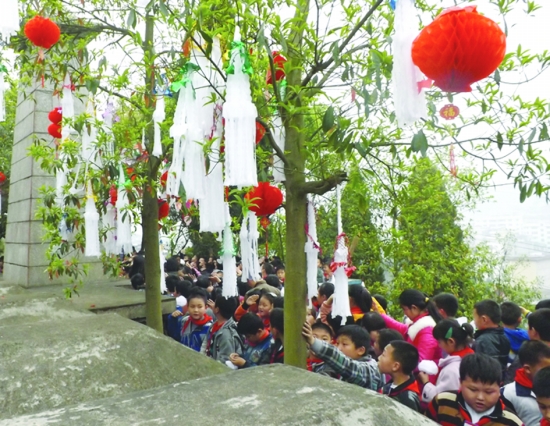 4月2日,保靖县迁陵小学师生在该县梓桐阁烈士陵园举行清明节扫墓纪念活动。 谭永凯 摄