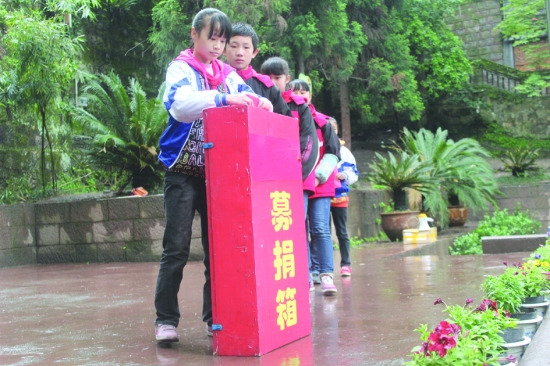 4月23日上午,凤凰县文昌阁小学举行为雅安地震灾区捐款仪式,该校2000多名师生踊跃上台募捐,奉献一片爱心,共捐助善款36795.5元。 龙俊华 摄