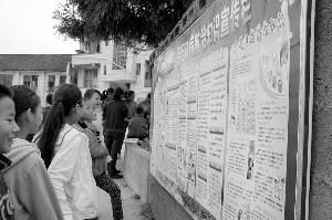 为积极预防H7N9禽流感,永顺教育系统启动了“防控H7N9禽流感”宣传活动,各所学校通过开展健康教育课及其他宣传形式,向学生及家长普及科学防控知识。图为4月26日,该县吊井乡九年制学校学生们正在展板前学习如何预防禽流感和手足口病。
