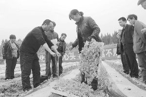 4月25日,永顺县毛坝乡烤烟技术员刘宏义(左一)在五寨村的大田里,采用移栽器为广大烟农传授“井窖式”烟叶移栽新方法。该乡着力推广小苗井窖内深栽,实现全生育期覆膜,减少工时,降低劳动强度。同时,解决春旱、高山、半高山烟区移栽期缺水的问题,确保烟叶成活率,促进烟农增产增收。