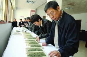 4月26日,古丈县第八届“茶王杯”斗茶会茶样评比活动正式启动,来自省农业厅、湖南农大、湖南省茶业集团公司和省农科院的6位评茶专家,将对200余个产自古丈境内的茶样进行专业品评,届时将评出金茶王1名、银茶王5名、制茶师和制茶能手各10名。图为斗茶会现场。
