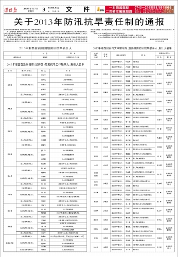 2013年湘西自治州县市(经开区)防汛抗旱工作联系人、责任人名单