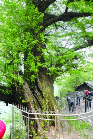 泸溪天桥山上发现一株古银杏树(又名白果树),树高28米,树冠24米,树围8米,直径2.5米,树龄1800年。近日,参观古银杏树的游人络绎不绝。