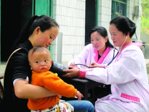 今年,全州各级人口计生部门、计生协会,围绕“创先争优,服务大局”这一主题,为计生家庭、育龄群众开展“送健康、送温暖、送政策”的“三送”服务活动,受到群众好评。图为近日,泸溪县计生技术人员深入武溪镇红土溪村为育龄群众免费体检。田晓辉 摄