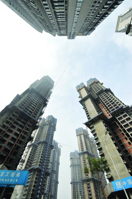 长沙市区一处商品房施工现场(5月8日摄) 记者日前从长沙市房产研究中心发布的《2013年1—4月长沙市房产交易情况通报》获悉,1—4月长沙地区新建商品房累计网签638.30万平方米,同比增长93.67%。 新华社记者 龙弘涛 摄