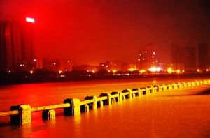 受降雨影响,9日凌晨快速上涨的湘江江水淹没了衡阳市区的观景平台。据衡阳市防汛办实时水位监控,湘江衡阳水文站5月9日8时水位为53.95米,为今年进入汛期以来的最高值。 新华社发(曹正平 摄)