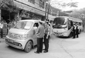 连日来,泸溪县由交通运输管理所牵头,交警、教育、综治等部门协同参与,依法查处该县乡镇学校周边的非客运面的、微型货车、农用车非法接送学生,农村短途公交客运车辆超员搭载学生等违章行为。图为近日,整治组在武溪镇学校附近检查车辆载人情况。