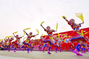 5月19日,由吉首市委、市政府主办的吉首地区“和谐馥郁杯—欢乐潇湘 乐在湘西 谷韵放歌 舞动吉首”第二届群众广场舞大奖赛决赛在该市人民广场举行。12支参赛队伍在完成规定舞曲《吉首吉》之外,还带来一支自选舞蹈。最终,吉首市职业中学拔得头筹,获得一等奖。比赛还评选出2名二等奖,3名三等奖及优秀组织奖。图为该市地税局健身队在表演《阿丫喜舞》。
