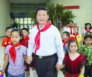 据新华社北京5月30日电(记 者 霍小光 周英峰)在“六一”国际儿童节即将到来之际,中共中央总书记、国家主席、中央军委主席习近平5月29日下午来到北京市少年宫,同来京参加交流体验活动的全国56个民族、革命老区、灾区、患有先天性心脏病少年儿童和农民工子女,以及首都城乡少年儿童代表1600多人,一起参加“快乐童年 放飞希望”主题队日活动,以一个“大朋友”的名义,向全国广大少年儿童祝贺节日。 由共青团中央、全国少工委组织的全国各族少年儿童交流体验活动已举办3届,今年在京的活动共7天。其间,正值北京市少年宫新宫落成,北京市少年宫特地邀请全国各族少年儿童代表来这里做客。 3时许,习近平来到少年宫门前,身着民族服装的各族少先队员和首都少年儿童代表迎上前来问好,一名少先队员为习近平系上鲜艳的红领巾。他向孩子们问好,并高兴地同孩子们交谈。 习近平沿途看到一些少年儿童正兴致勃勃开展“趣味足球”“跳花筋”“抖空竹”等特色活动,他向孩子们挥手致意,并加入到孩子们中间共同抖起“欢乐伞”,孩子们欢呼着表达他们的兴奋之情。 植物园农作物区,一畦畦番茄、芥蓝、芹菜等长势喜人,少年儿童正在从事整地、播种、移栽、松土、蔬菜采收等活动。习近平走过去,观看孩子们劳动,并蹲下身子同移栽人参果苗的两个孩子交谈,询问人参果主要产自哪里、生长期多长、适合什么样的水土,孩子们一一作答。习近平对孩子们说,生活靠劳动创造,人生也靠劳动创造。你们从小就要树立劳动光荣的观念,自己的事自己做,他人的事帮着做,公益的事争着做,通过劳动播种希望、收获果实,也通过劳动磨炼意志、锻炼自己。 经过“阅读木化石”活动区,习近平认真察看。到了城市生态系统观测站,少年儿童正在老师指导下用仪器读取各种环境因子数据,习近平上前向孩子们询问情况,同孩子们交流对环保的认识和理解,听孩子们讲他们掌握的关于好天气的主要指标、PM2.5的具体危害等方面的知识。他说,大自然充满乐趣、无比美丽,热爱自然是一种好习惯,保护环境是每个人的责任,少年儿童要在这方面发挥小主人作用。 随后,习近平前往少年宫主楼,沿途看到一些女孩子正在练习足球,他招呼她们过来,观看了她们的基本功操演。他来到主楼二层“传统艺术”区,看望了正在进行手工制作的几名先天性心脏病治愈儿童。他们都是民政部门邀请来京接受免费治疗的,看到总书记过来,争着展示自己的作品。习近平关切地询问他们的治疗情况,祝他们过上更幸福的生活。 主楼三楼,“能想象能创造”实践活动吸引了不少少年儿童参与。得知正在进行“美好家园创意搭建”的是来自汶川、玉树、舟曲、芦山等灾区的少年儿童,习近平走过去听孩子们介绍,肯定他们建设美好家园的决心和信心,称赞他们体现先进建筑理念的创新创造意识。习近平对孩子们说,想象力、创造力从哪里来?要从刻苦的学习中来。知识越学越多,知识越多越好,你们要像海绵吸水一样学习知识。既勤学书本知识,又多学课外知识,还要勤于思考,多想想,多问问,这样就能培养自己的创造精神。 三楼露台,一些残疾儿童正在玩“蚂蚁搬家”等游戏,习近平勉励他们自立自强,在社会关怀下健康成长。 在主楼一层共享大厅,一棵心愿树上挂满了孩子们的心愿卡,一些来自革命老区的少年儿童和农村留守儿童、进城务工人员随迁子女向总书记诉说着自己的心愿。习近平频频点头,说我此刻的心愿就是你们都心想事成。 最后,习近平牵着孩子们的手,来到大厅中央,观看各族少年儿童“手拉手、心连心”联欢活动,为他们的文艺表演鼓掌加油。他对簇拥过来的孩子们说,每个人都是从孩子长大的。实现我们的梦想,靠我们这一代,更靠下一代。少年儿童从小就要立志向、有梦想,爱学习、爱劳动、爱祖国,德智体美全面发展,长大后做对祖国建设有用的人才。 习近平强调,孩子们成长得更好,是我们最大的心愿。党和政府要始终关心各族少年儿童,努力为他们学习成长创造更好的条件。老师、家长要承担起教育引导少年儿童成长成才的责任。少先队组织要更好地为少年儿童服务。全社会都要关心少年儿童成长,支持少年儿童工作。对损害少年儿童权益、破坏少年儿童身心健康的言行,要坚决防止和依法打击。 |