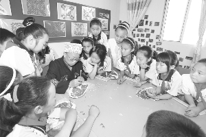 近年来,泸溪县编辑出版了国家非物质文化遗产踏虎凿花技艺普及教材和传统纹样集,并在该县职中和部分中小学校开设凿花工艺课程。图为5月24日,踏虎凿花代表性传承人杨桂军来到浦市镇小学向师生们传授踏虎凿花技艺。 李焱华 邓和生 邓玮玲 摄