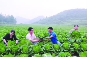 6月7日,保靖县野竹坪镇反季白菜开始采摘。目前,该镇600亩反季蔬菜进入丰收季节。反季蔬菜已成为该镇农民的支柱产业之一。 彭司进 宋孟斐 摄