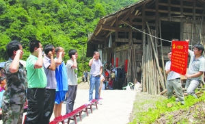 6月22日,龙山县纪委监察局机关干部,深入扶贫联系村咱果乡金线村,开展迎“七一”活动,与农民党员重温入党誓词。 向德刚 向 朗 摄