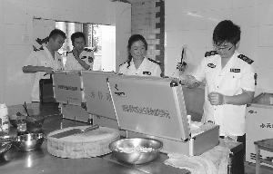 为完善餐饮服务食品安全应急处置机制,提高餐饮服务食品安全保障能力,7月12日,泸溪县食品药品监督管理局组织开展了餐饮服务食品安全事故应急处置演练。演练模拟该局辖区内的某餐馆,多名顾客在用餐后,陆续出现呕吐、腹泻、发热等中毒症状,接到报告,该局迅速启动应急预案,迅速展开现场应急处置、后续处理。图为该局人员正在对演练模拟餐馆餐具及加工原材料、食物现场采样。