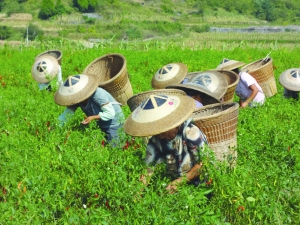 8月15日,泸溪县兴隆场镇农民在抢收玻璃椒。连日干旱,种椒农民一边给辣椒地浇水抗旱,一边抢收玻璃椒。据了解,该镇玻璃椒亩产1500到2000公斤,已成为当地群众致富的主要产业之一。 向民贵 符永明 摄