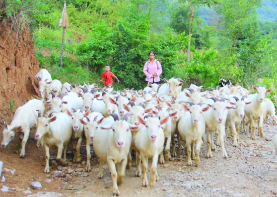 8月21日,花垣县花垣镇下寨河村村民麻栏巾放羊归来。近年来,她充分利用山地资源,大力养殖本地山羊。如今,她养有山羊150多只,值10多万元,成了当地养羊致富的能手。 吴红艳 摄