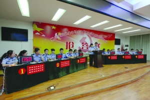 8月30日上午,州公安局举办了一场学习贯彻党的十八大精神和党章知识抢答赛。来自局机关20个党支部代表队参加此次知识抢答赛。比赛中,选手们踊跃抢答。经过2个小时的激烈角逐,警令部、吉凤分局和看守所党支部联合队最终获得团体第一名。图为抢答现场。