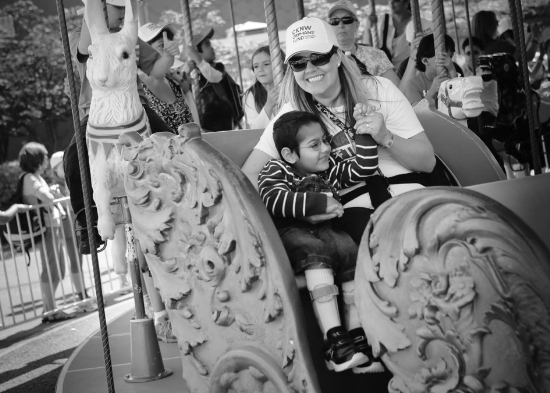 2013年6月5日, 一名残障儿童在老师的陪同下在加拿大温哥华的一处游乐场内玩耍。 新华社发( 梁 森 摄)