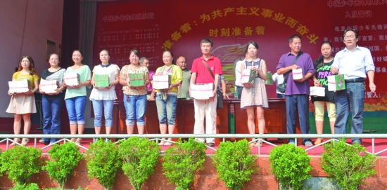 9月10日,凤凰县箭道坪小学的全体教师欢聚一堂,庆祝一年一度的教师节。为提倡新风,该校校长给全体在职教师送上了一份别样的礼物———苏霍姆林斯基的《给老师的100条建议》。图为该校各年级组组长领取新书。 龙进海 杨俊霞 摄