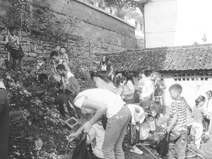 泸溪县兴隆场学区1000多名师生积极开展城乡同建同治活动,以此推动校容整洁,建设美丽校园。图为9月16日,学区师生清扫卫生和清运垃圾。 向民贵 吴学高 摄