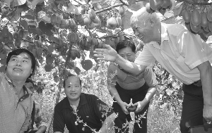 9月17日上午,年过古稀的猕猴桃老专家石泽亮在永顺县松柏猕猴桃示范基地,代表吉首大学武陵山区猕猴桃研究中心和永顺县鸿丰猕猴桃专业户合作社,向州科技局组织,由5名研究员、教授组成的“永顺县松柏猕猴桃示范基地产量测评专家组”进行了汇报,并接受现场测评。测评结果,该基地猕猴桃亩产达到2000斤,这一结果让石泽亮和专家组成员发出了爽朗的笑声。图为现场测评。