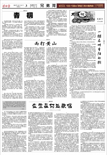 ●张太元 在我当兵之前,就听说吉首市东乡的河溪镇百里村有一棵大古树,名重阳木,属落叶乔木,大戟科,很美。但是,我一直抽不出时间去看她。几十年的军警深涯,工作繁忙,任务重,也没有闲情去观赏她。提前退休到现在,又过去了好几年,曾几次路过河溪,在筹备东乡民族文化展演会的第三次会议上,碰上了颇有名望的“河溪通”向昌元老先生。他提到了百里重阳。 翌日晨时。我和向老,还有石记者,驱车一头扎进了百里村。村里晨时的最后几缕炊烟已慢慢散去。村民们三三两两走出村庄,进入田间地头,开始一天的劳作了。我们弃车,徒步沿河而下,边走边聊。向老说,重阳,中文学名:重阳木,别名乌杨、茄冬树、洪桐。重阳,象征着健康长寿。她的叶春夏油绿,深秋泛红,叶可制茶,根可入药。可惜的是这棵重阳,有几根枝杈已干枯,开始腐烂了。 “也无妨。不够完美,更显得她历尽沧桑的印痕可鉴。”我接过话题说。 “古的东西,大都会有点残缺,那就是人们常说的残缺的美!”石记者也插话道。 “该重阳,经林业部门测算,她已有一千六百年了。”向老接着说,“她之所以能够存活到现在,还有一段离奇的故事……” 相传,莫家油坊的莫老板,要购买这棵重阳树做油榨,价都谈好了,并安排住在百里村的舒氏去砍树,送三斗米为砍树的工钱,舒氏答应了。哪知,当晚舒氏就病倒了,直到三斗米吃完,病才好。莫老板又送了两斗米给舒氏,并强调,必须把树砍下来。舒氏走到树边,刚扬起斧头,突然打了个寒战,全身无力,又病倒了。结果是树未砍成,吃了五斗米,舒氏只好到莫家油坊做长工抵米钱。过了两个月,莫老板又安排绰号叫歪口二的长工去砍树,可不到半个时辰,家里用来背油坊碾子的一头健壮的大水牛,莫名其妙的突然病倒。经兽医抢救无效,不到三个时辰就死了。莫老板是个聪明人,他意识到连续发生的事可能与要砍百里那棵古重阳有关。想到这里,他毛骨悚然,从此落下了一个心病,再不敢提砍树的事了,树保住了。这个善意的传说,印证着人们对它的敬意。 悦耳动听的山鸟鸣叫声,打断了我们的话题,那声音是从重阳树那边传过来的,很清脆。我们加快了步伐。 当走近我魂牵梦绕的重阳时,我被她的高大、古朴、神奇震惊了!我下意识地朝石记者瞟了一眼,看他此刻的反应。他的眼神也是如此的惊奇、敬重,甚至有一点贪婪。我们围绕着古老的重阳,转了一圈又一圈,然后又向河滩方向后退十来米,仰头观赏。真是一步一景,步步现奇。这时有几个牧童赶着几头牛,从下游的河滩边过来了。 “阿旺哥,你看,有几个醉鬼在看树哩!”一个牧童高声叫着。 “他们不是醉鬼。你看,他们只顾抬头看树,顾不了脚下踩的是坑是洼,可能是被河滩上的矶子岩套的,在打狗屎闯呐!”阿旺回答道。 我们不顾牧童的议论,也顾不了脚下踩的是什么,只顾一个劲地抬头仰望着重阳树上展现的奇景,盲目地移动着脚步,磕磕绊绊,蹒蹒跚跚,确实像醉酒一样的走着,看着……啊!真棒,美极了!你看:她那散布在四周的古铜色的根和古藤的根交织在一起,曲曲弯弯,盘根错节,在扎进泥土中的刹那间犹如龙爪,死死钳入大地,大有入地三仞之感;她的主杆,拔地而起,约五人合围的腰身,有凸显的棱角,也有凹陷的沟槽,有几处还隆起云团似的疙瘩,主杆就以这样的形态,向上升腾,再升腾,直冲云霄;她的枝,特别的粗壮;横着的像大吊车的铁臂,伸展开去,竟达数十米,还被古藤〈凉粉子〉缠绕着,藤条悬挂在空中,一排一排的随风摇曳着,宛若龙须;竖着的像根根玉柱,又像大货轮的桅杆,直指苍穹,朝天阙。她的叶,更茂密无比,就像一把巨大的绿伞,遮天蔽日,硬是覆盖了半个河滩。人在树下,恰似身置北京的“鸟巢”中一样的感觉。特别神奇,更值得赞美的是:依树而生的古藤,一个人都合抱不下,还有附体寄生在树上的乔木或灌木都有好几个植物种类,并且均有千年以上的年轮了,这是林业部门的论证结论。真可谓是“三古一体”,即古树、古藤和寄生的古枝。再就是在重阳树的根部和主杆上都突显出动物———狮子的身姿,越看越像,栩栩如生。她〈他〉们相互依偎越千年,同甘共苦度春秋。几种植物如此地和谐相处,共存共荣,不屈不挠,奋勇向上的精神,难道不值得我们赞美和学习吗? 朋友,若在晴天日出,又有点薄云或者在皎洁的月夜,又有点雾纱流动的时刻,请君去观赏,那将又是一番景色,有诗为证: 神奇重阳生百里,三古一体世珍稀。 根深叶盖数十米,杆壮枝繁挂龙须。 云锁树冠日绘彩,雾绕腰身月弄曲。 山鸟穿梭丛中戏,游客醉步久不离。 |