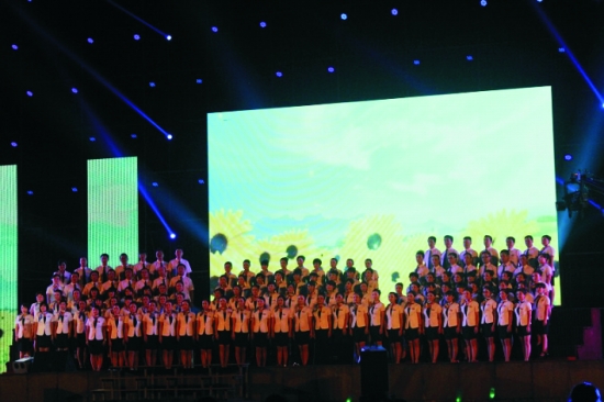 图为吉首谷韵民族小学全体教师大型配乐诗朗诵《我骄傲,我是从文人》。