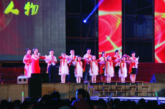图为石丹、魏薇等6名老师在校园“感动人物”颁奖现场。