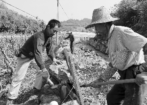 10月28日,保靖县野竹坪镇杰坳村的村民们在忙着修建水利设施。秋收以后,该县各乡镇群众加大对农田水利设施的建设力度,对病险水库、渠道、堤坝等进行除险加固和整修,为来年农田灌溉做好准备。
