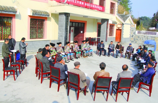 12月4日,花垣县排碧乡十八洞村村民在听专家讲授种养技术。当天,花垣县委组织部、县农业局、县畜牧局有关专家,深入十八洞村开展“送技下村”活动,帮助村民发展养羊、种西瓜等种养产业,深受村民好评。 张耀成 摄