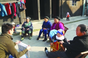 近日,花垣县大学生村官队伍掀起学习贯彻十八届三中全会精神热潮,将全面深化改革的春风吹进苗家山寨。图为该县大学生村官、排碧乡十八洞村支书助理龚海华(左一)为村民讲解十八届三中全会关于城乡发展一体化改革精神,让村民切身感受党中央对农村的深切关怀和温暖。