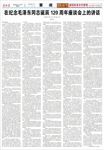 在纪念毛泽东同志诞辰120周年座谈会上的讲话