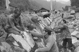 1月3日,民工们在保靖县夯沙乡梯子村修建河堤。该工程全长4.7公里,河堤修成后不仅可保护河边近万亩农田,还可为吕洞山景区发展旅游业打基础。 唐文贵 摄