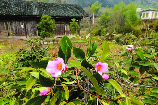高峰村一村民家院子里的山茶花在寒风中怒放着,这里曾经是他们幸福的家园,但因道路不通,他们选择了举家外出打工,一切都荒废了。 本报记者 田宏贵 摄