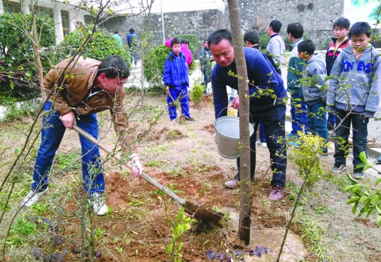 3月11日,花垣县团结中学师生在校园里植树。 龙恩泽 摄